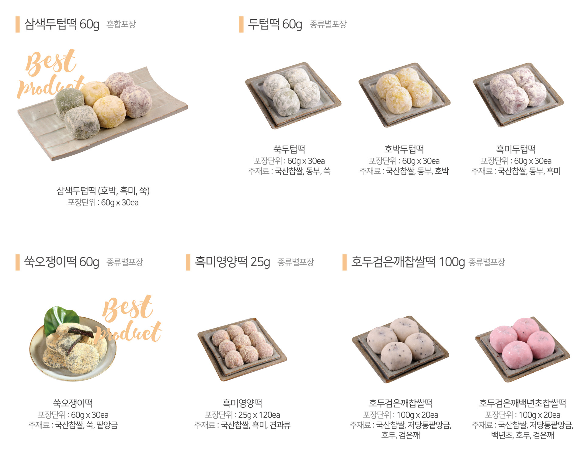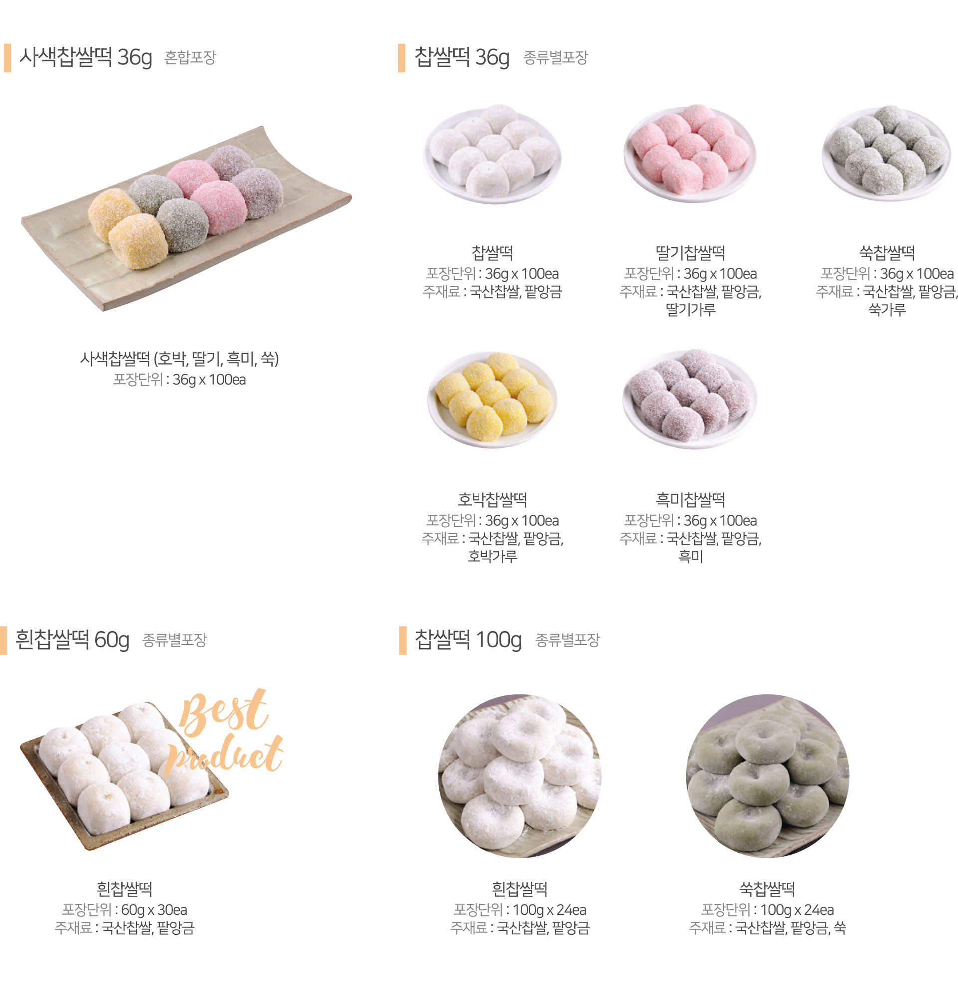 국내산 찹쌀로 만들어 쫄깃하고 팥앙금이 어우러져 더 달콤한 전통 찹쌀떡