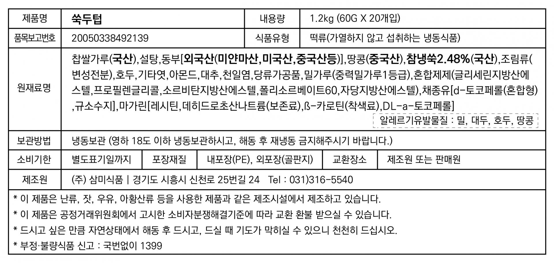 상호 : (주)삼미식품   대표 : 유완현   사업자등록번호 : 140-81-33171   통신판매업신고 : 2018-경기시흥-0323