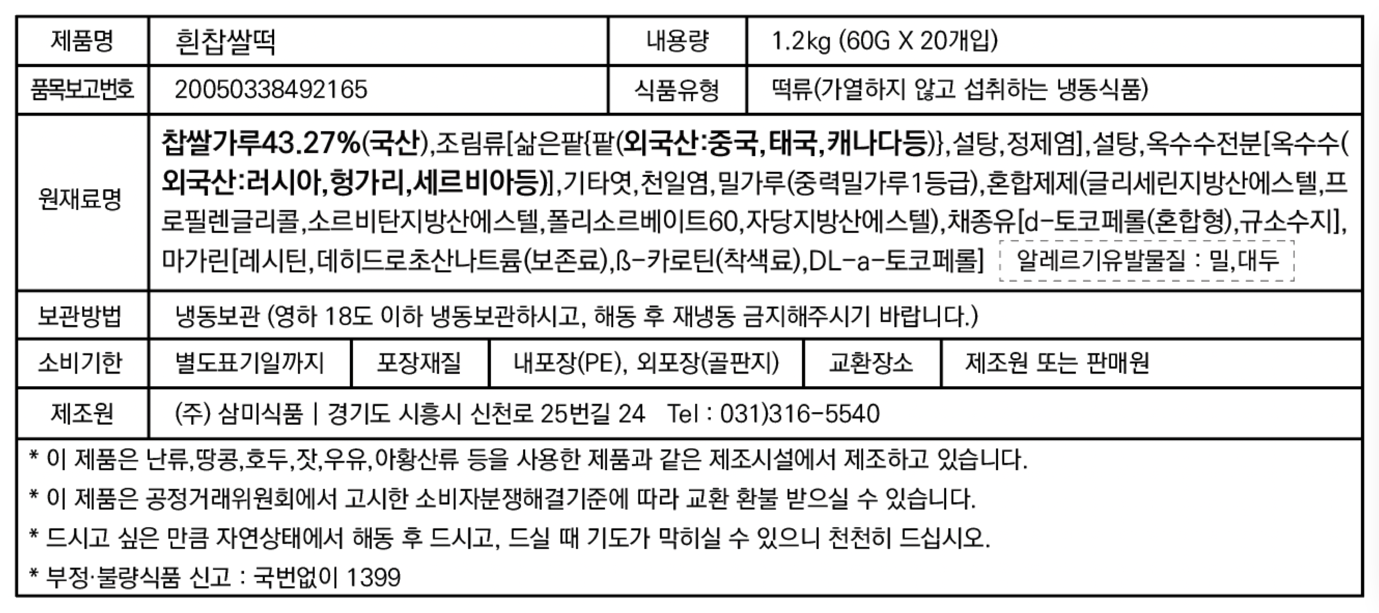 상호 : (주)삼미식품   대표 : 유완현   사업자등록번호 : 140-81-33171   통신판매업신고 : 2018-경기시흥-0323