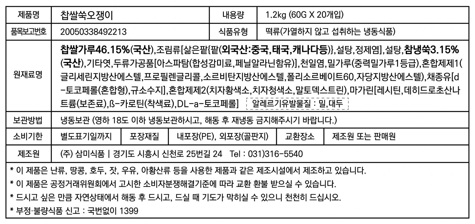 상호 : (주)삼미식품   대표 : 유완현   사업자등록번호 : 140-81-33171   통신판매업신고 : 2018-경기시흥-0323